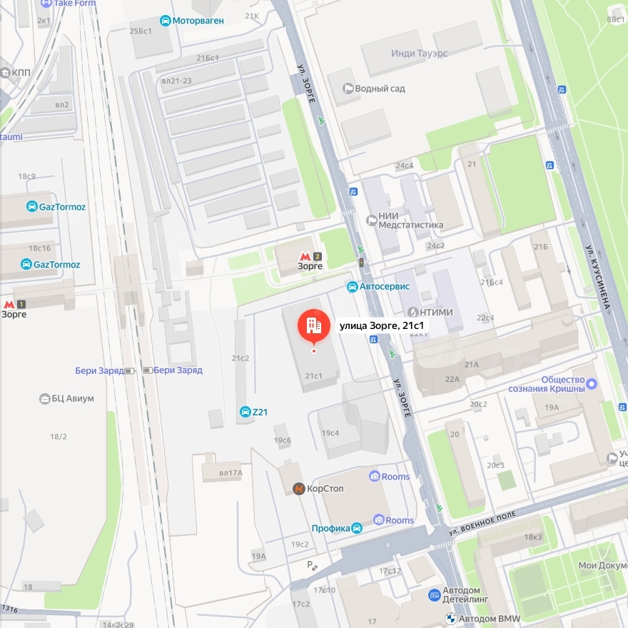 Адрес: Москва, Хорошевский район, ул. Зорге, д. 21, строение 1, пом. I м/м 655.