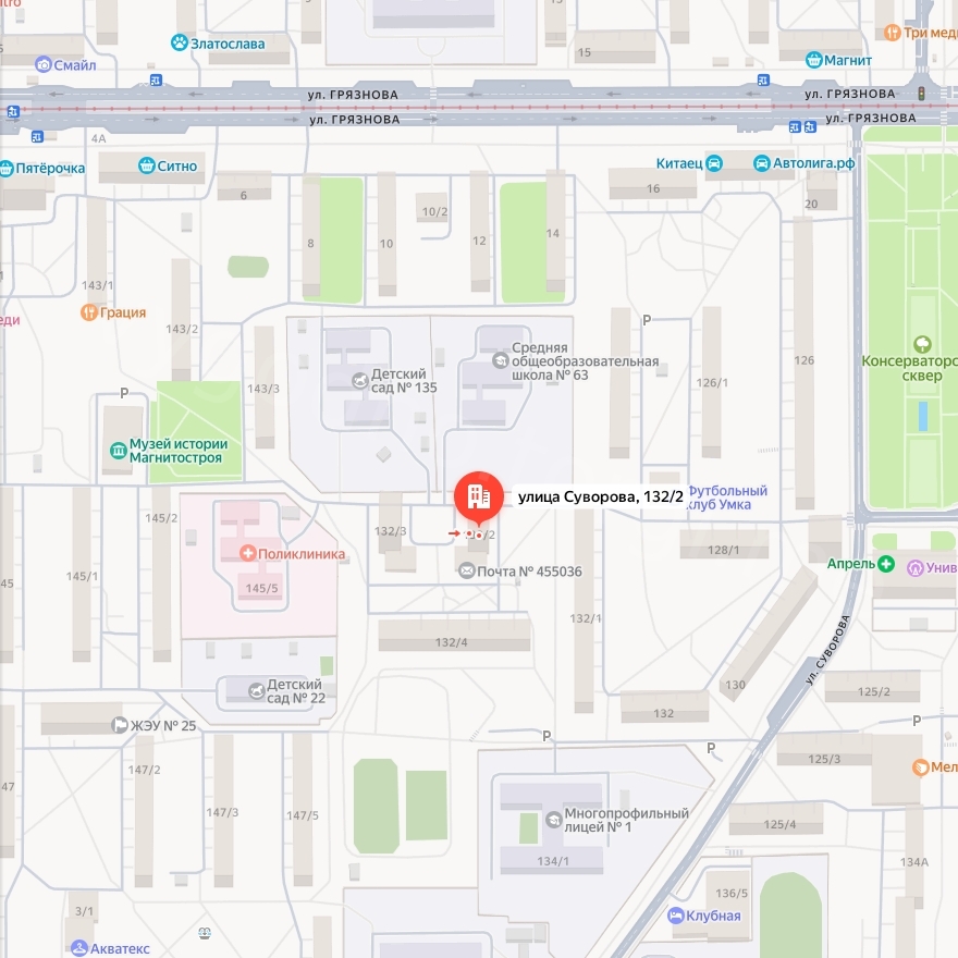 Вид ОН: Помещение Адрес: Челябинская область, г Магнитогорск, ул Суворова, д 132, корп 2, пом 2 Пл. 57.6 кв.м. КН 74:33:0216001:2864 Назначение: Нежилое Наименование: Нежилое помещение Номер, тип этажа, на котором расположено помещение, машино-место: Этаж № 01 Собственность 74:33:0216001:2864-74/033/2019-3 от 31.10.2019 Кадастровые номера иных объектов недвижимости, в пределах которых расположен объект недвижимости: 74:33:0216001:394 Виды разрешенного использования: нежилое Ограничение прав и обременение объекта недвижимости: не зарегистрировано