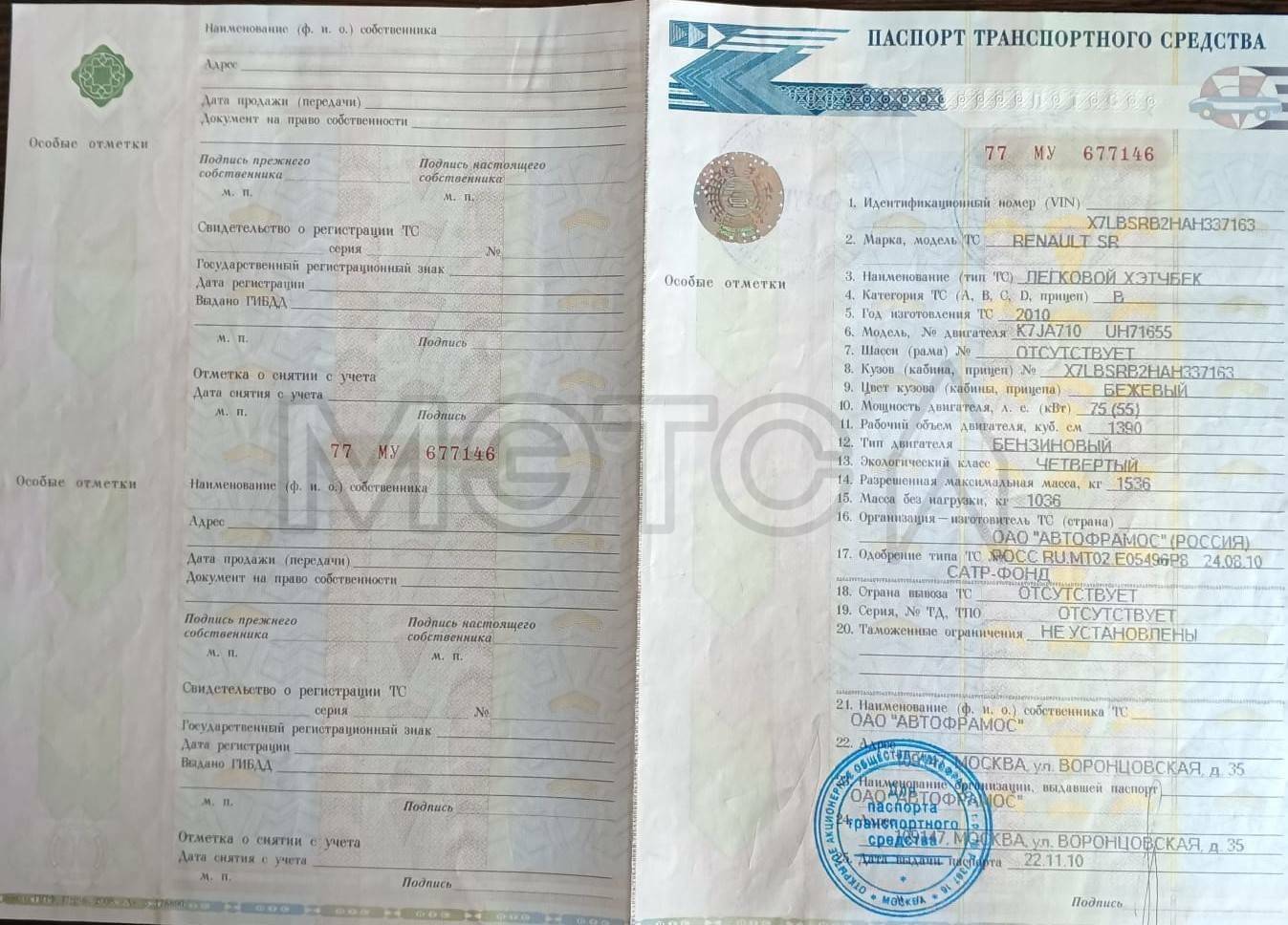 Автомобиль Renault Sandero SR, 2010 г.в., идентификационный номер (VIN) X7LBSRB2HAH337163, государственный регистрационный знак М462НА174. Мощность, л.с.(по ПТС): 75