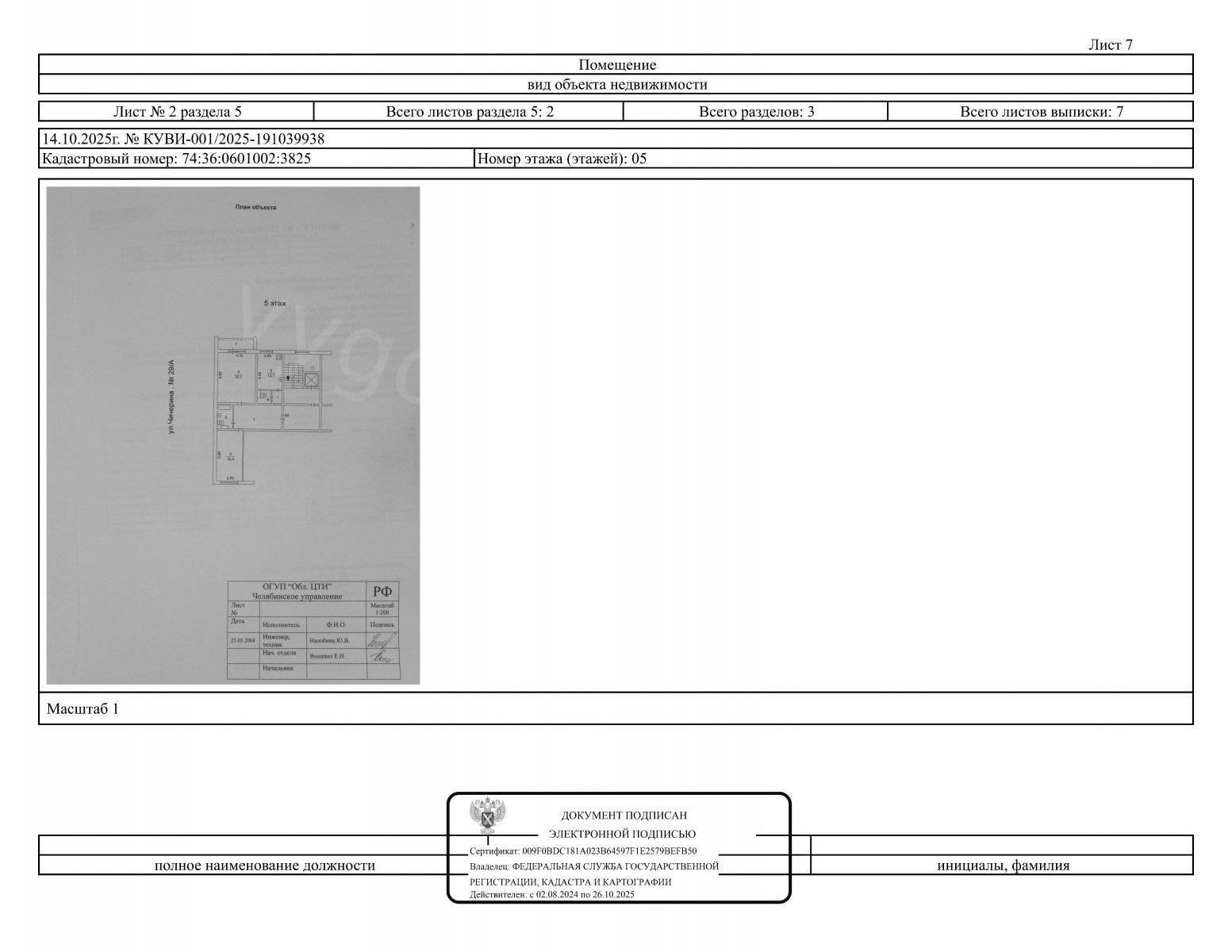 Кадастровый номер: 74:36:0601002:3825