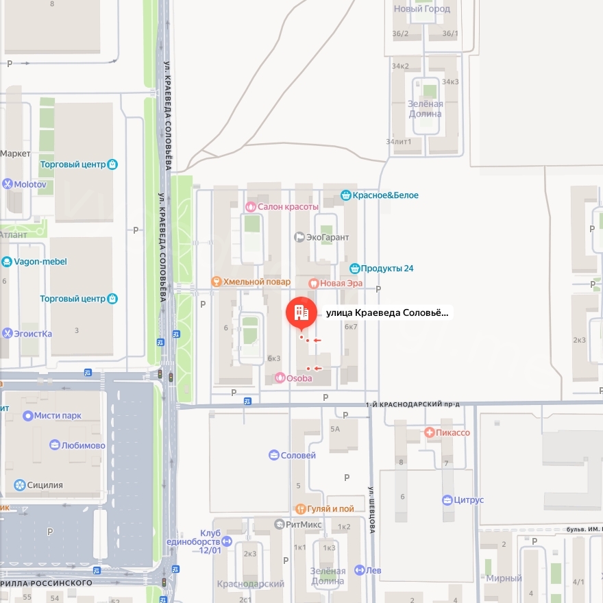 Адрес: Краснодарский край, г. Краснодар, ул. им. Краеведа Соловьева В.А., д. 6, корпус 6, кв. 38