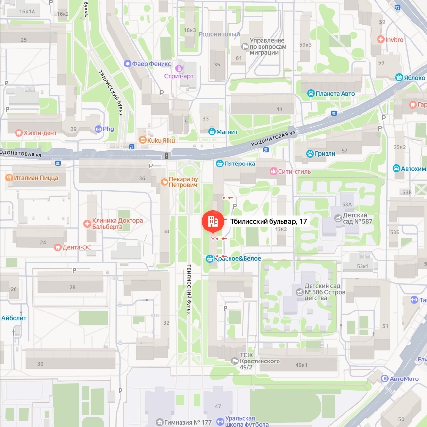 Адрес: Свердловская область, г. Екатеринбург, б-р. Тбилисский, д. 17, кв. 212