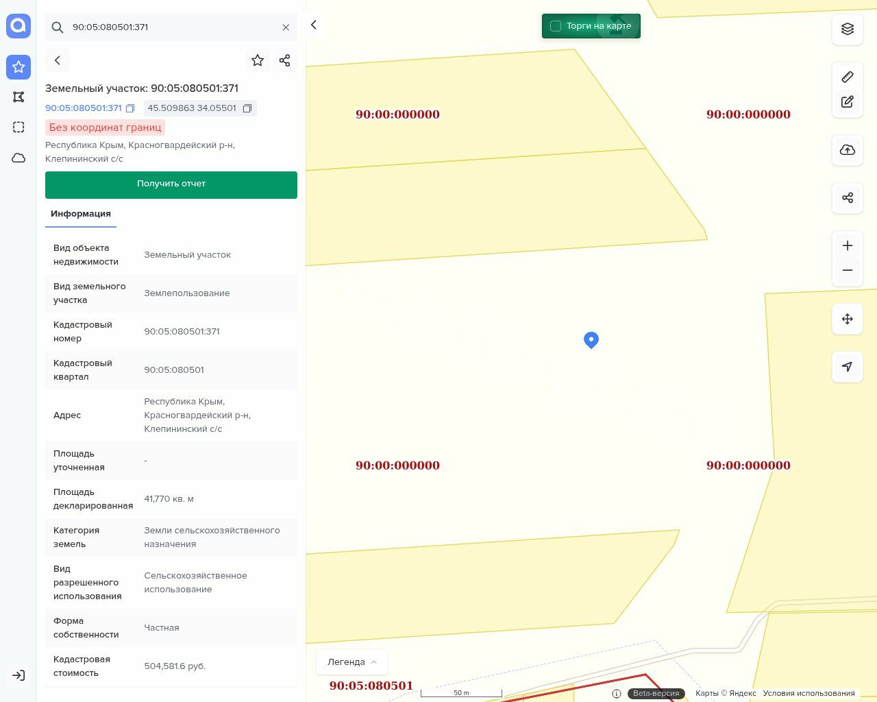 Лот №1. Земельный участок с кадастровым номером 90:05:080501:371, пл. 41 770 кв.м.