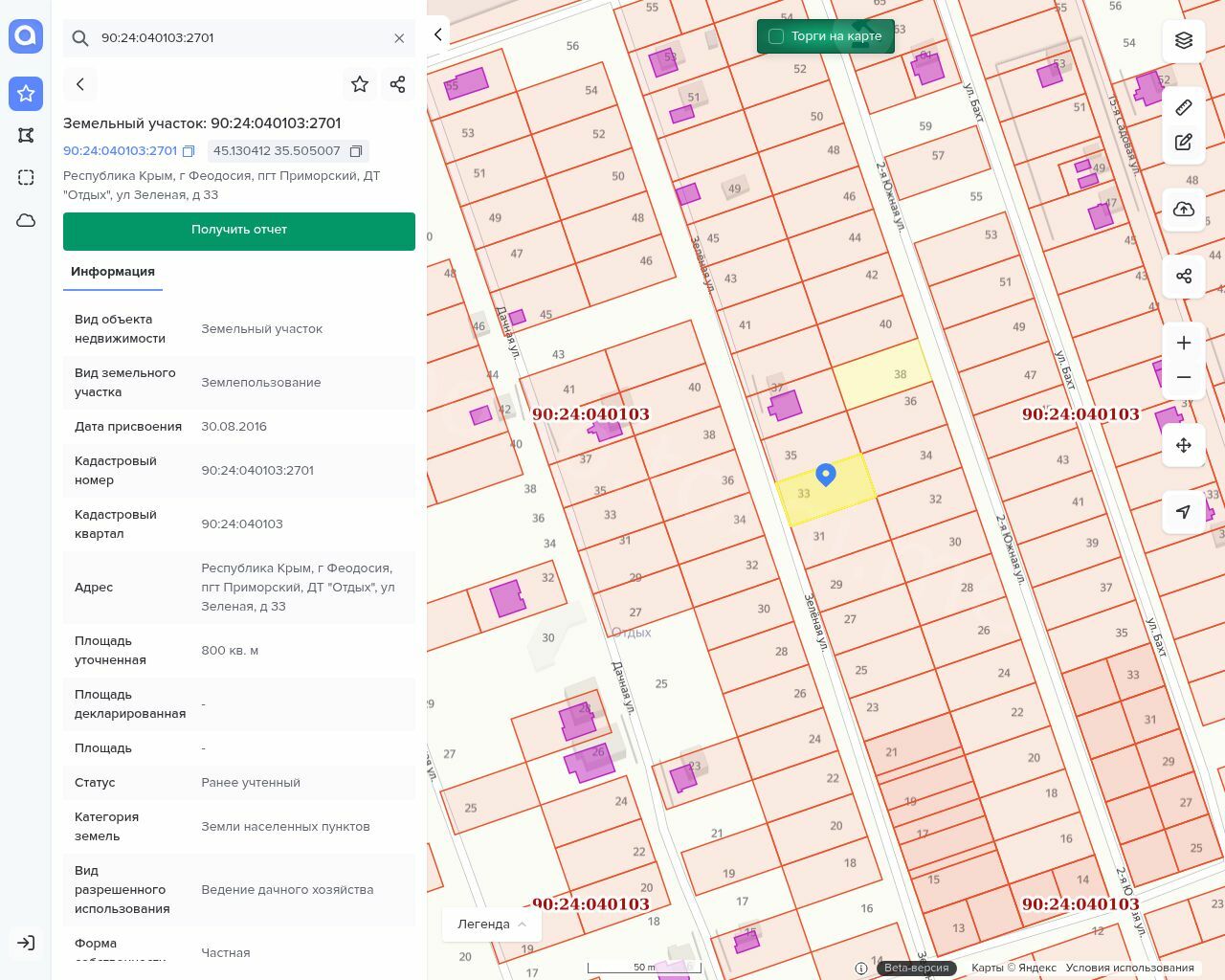 Земельный участок. Кадастровый номер: 90:24:040103:2701. Вид права: собственность. Площадь: 800 +/- 10 кв.м. Совместно нажитое имущество в соответствии со статьей 34 Семейного кодекса Российской Федерации.