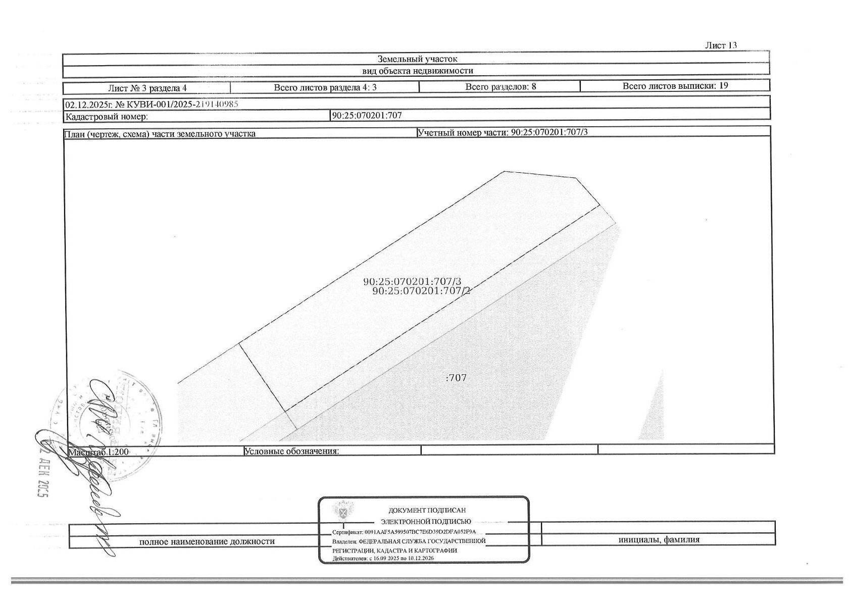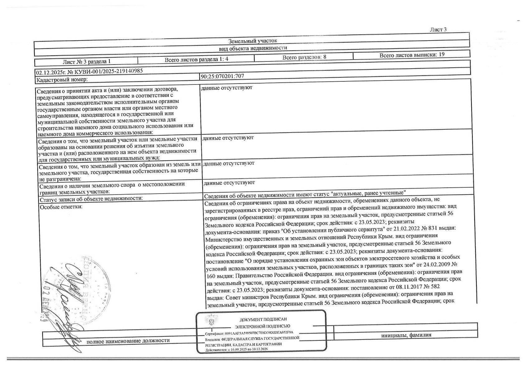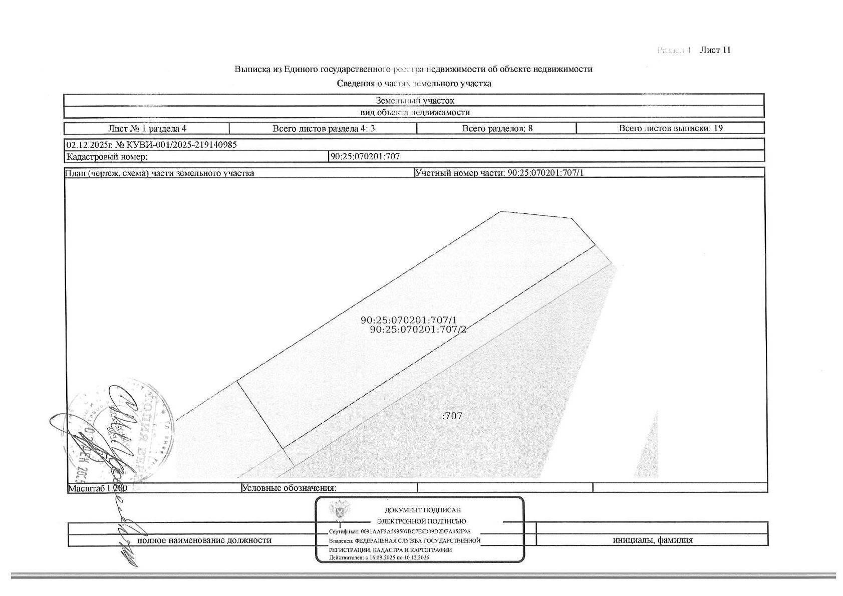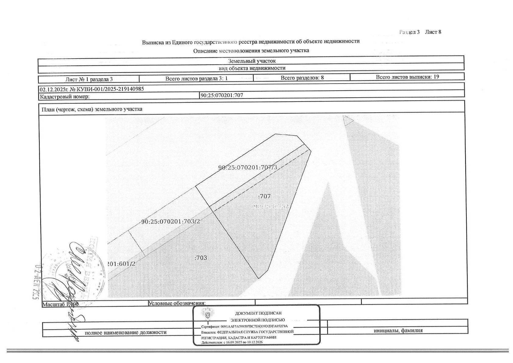 Кадастровый номер земельного участка: 90:25:070201:707