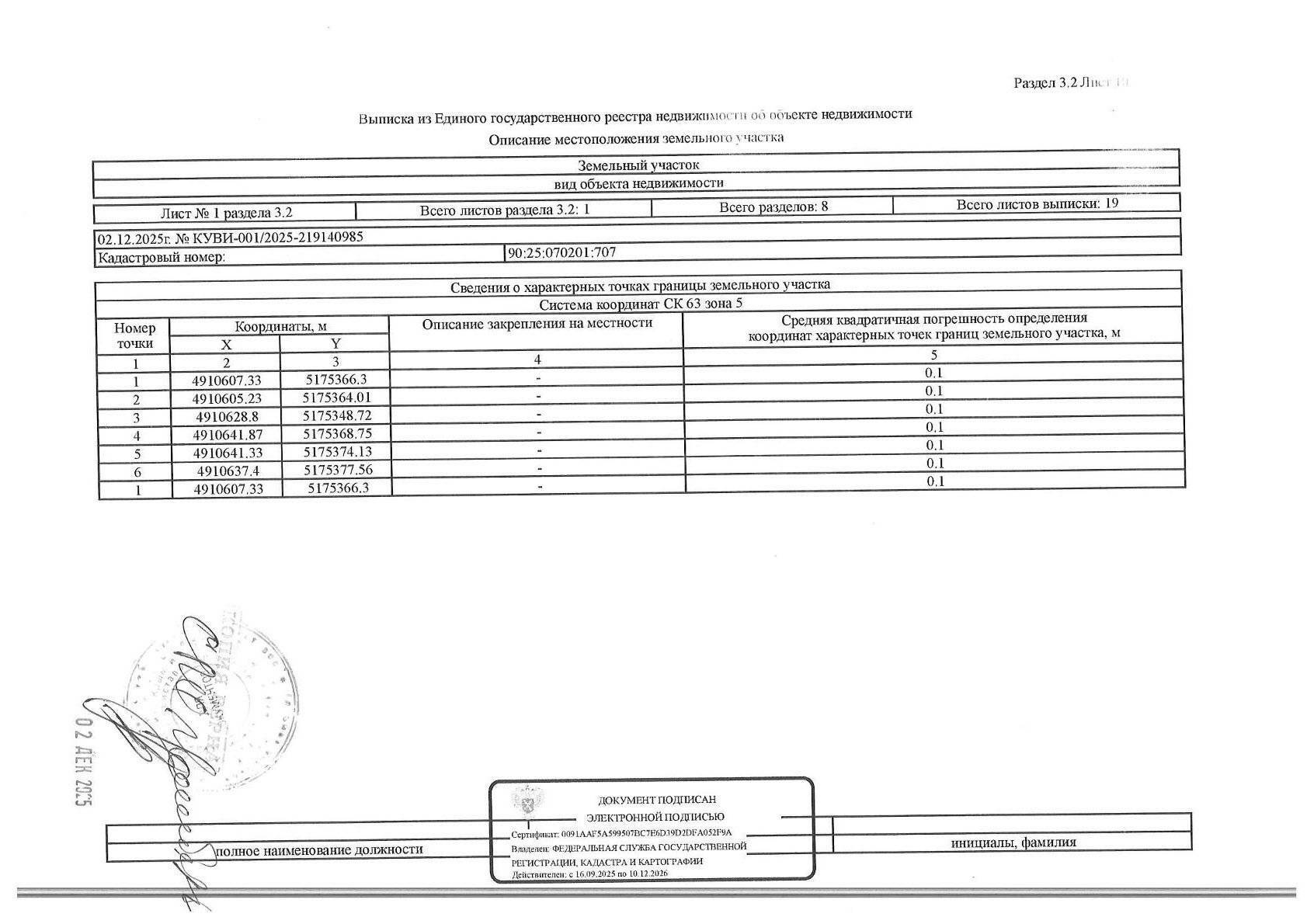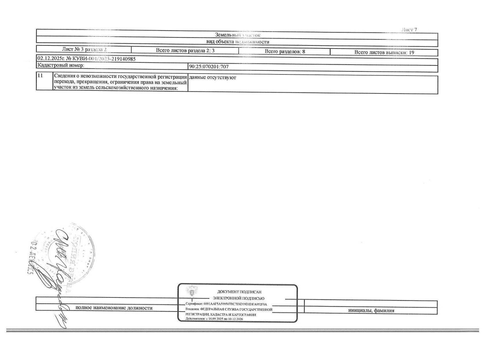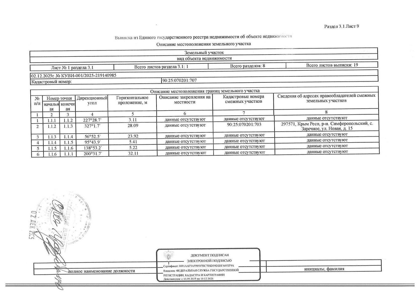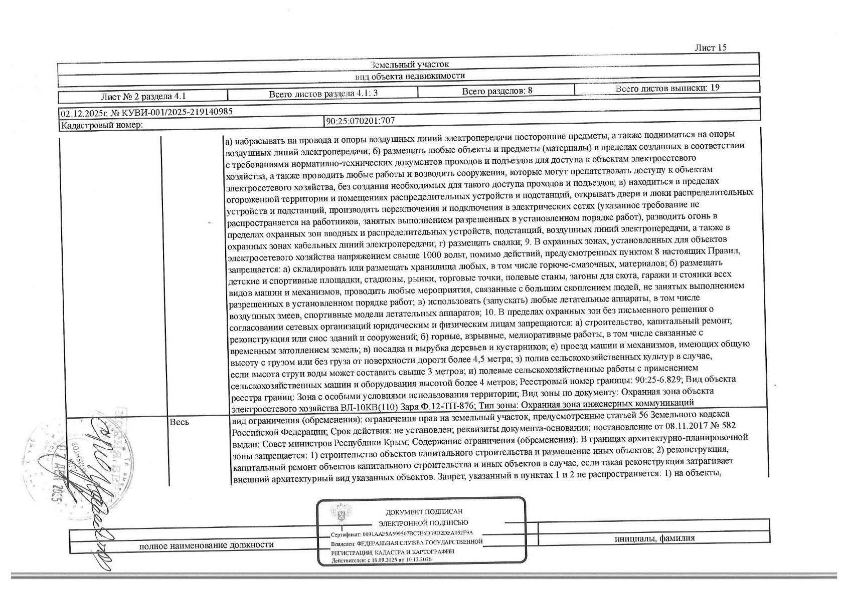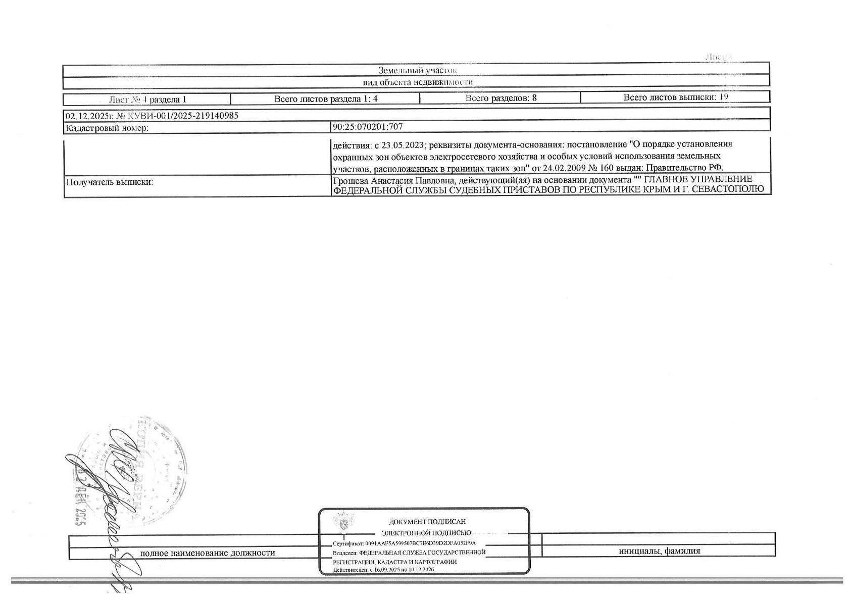 Кадастровый номер земельного участка: 90:25:070201:707
