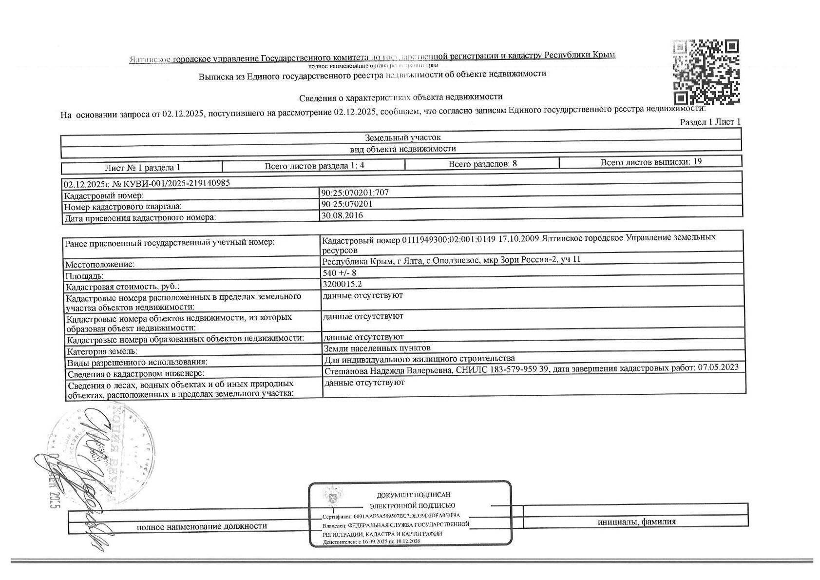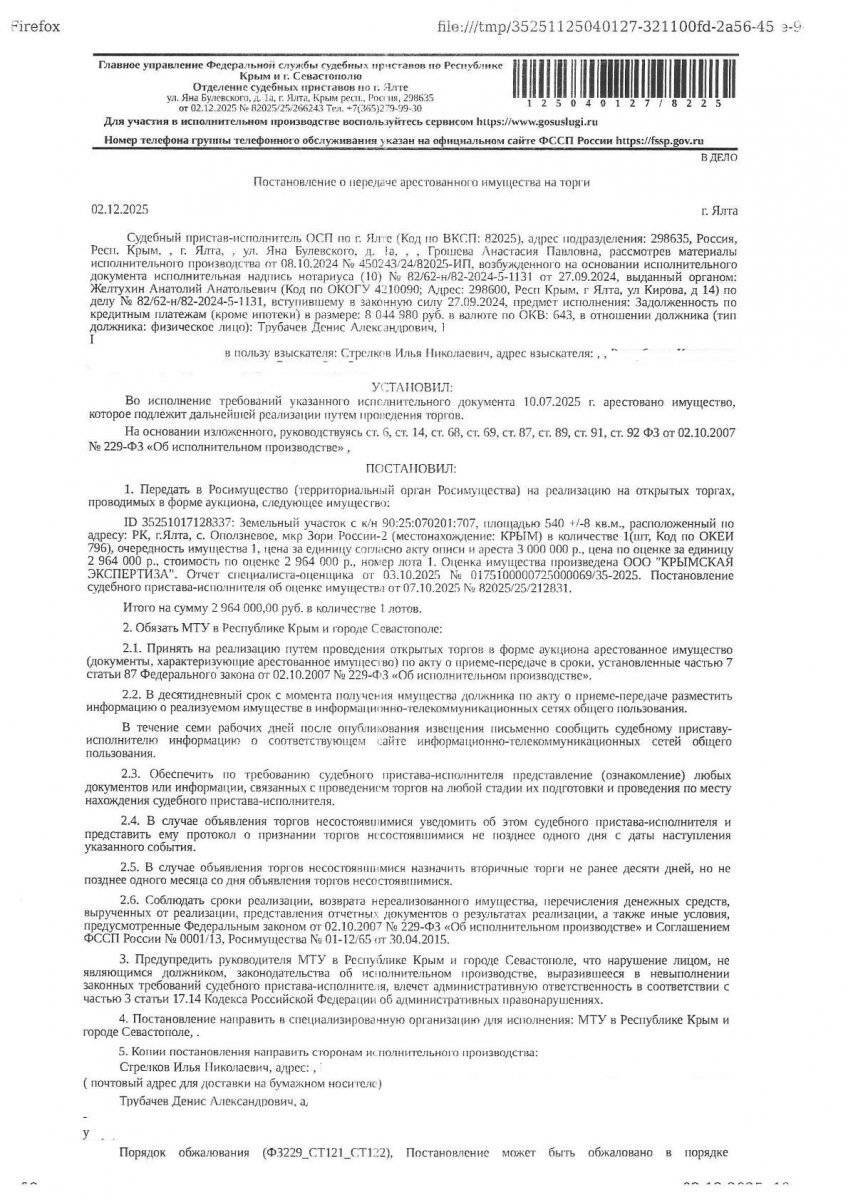Местонахождение имущества: Респ Крым, м.о. город-курорт Ялта, с Оползневое мкр. Зори России-2, уч. 11