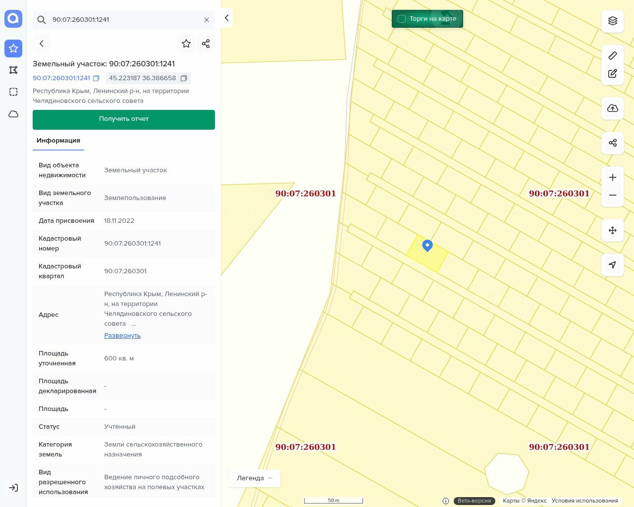 Земельный участок общей площадью 600 +/- 9 м2, с кадастровым номером 90:07:260301:1241