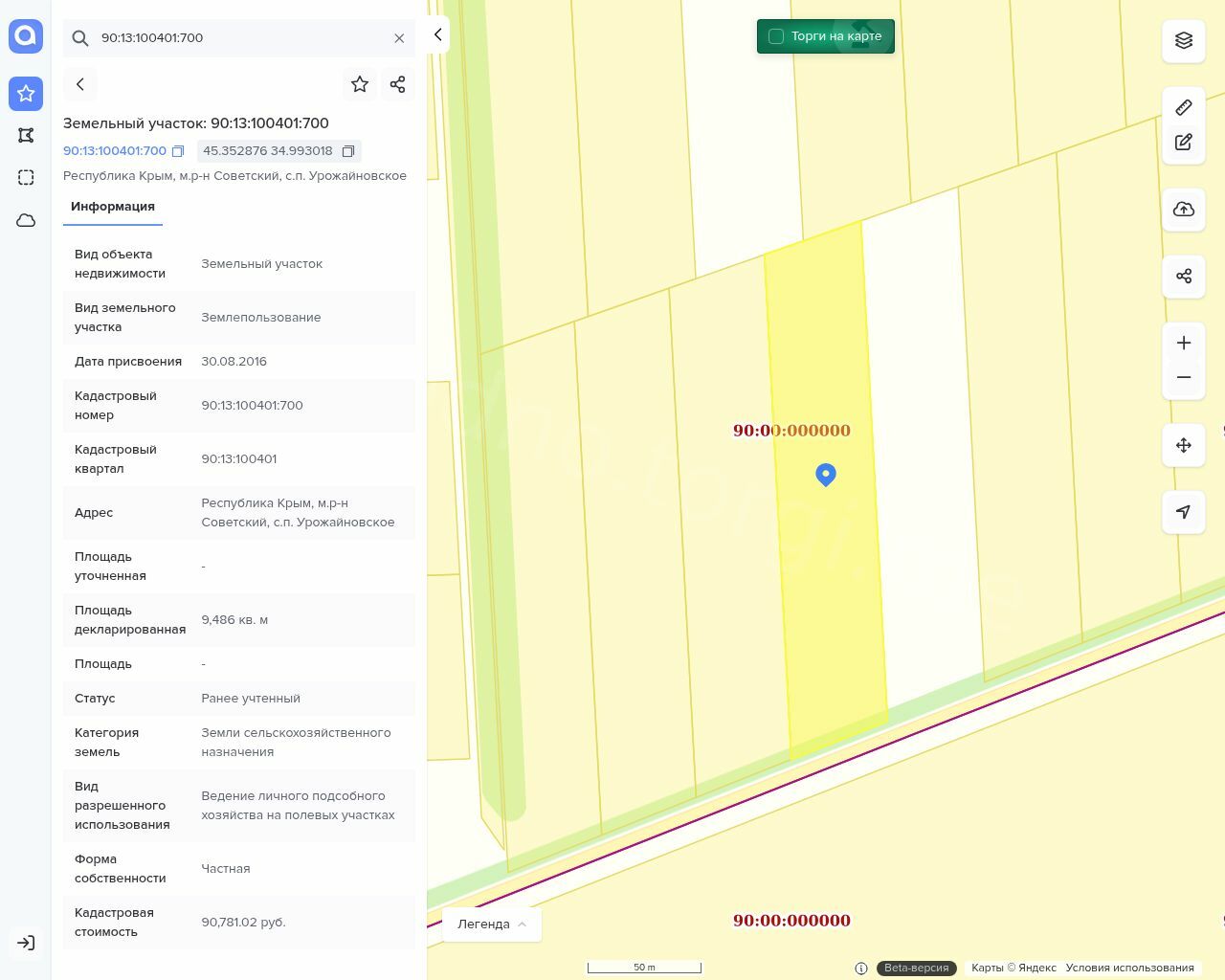 Земельный участок, площадь 9486 кв.м., назначение: земли сельскохозяйственного назначения, кадастровый (условный) номер: 90:13:100401:700. На земельном участке ничего нет.