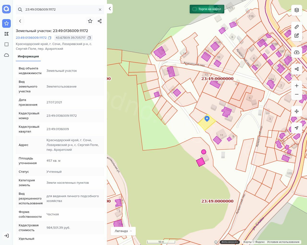 Земельный участок площадью 457 кв.м., кадастровый номер 23:49:0136009:11172